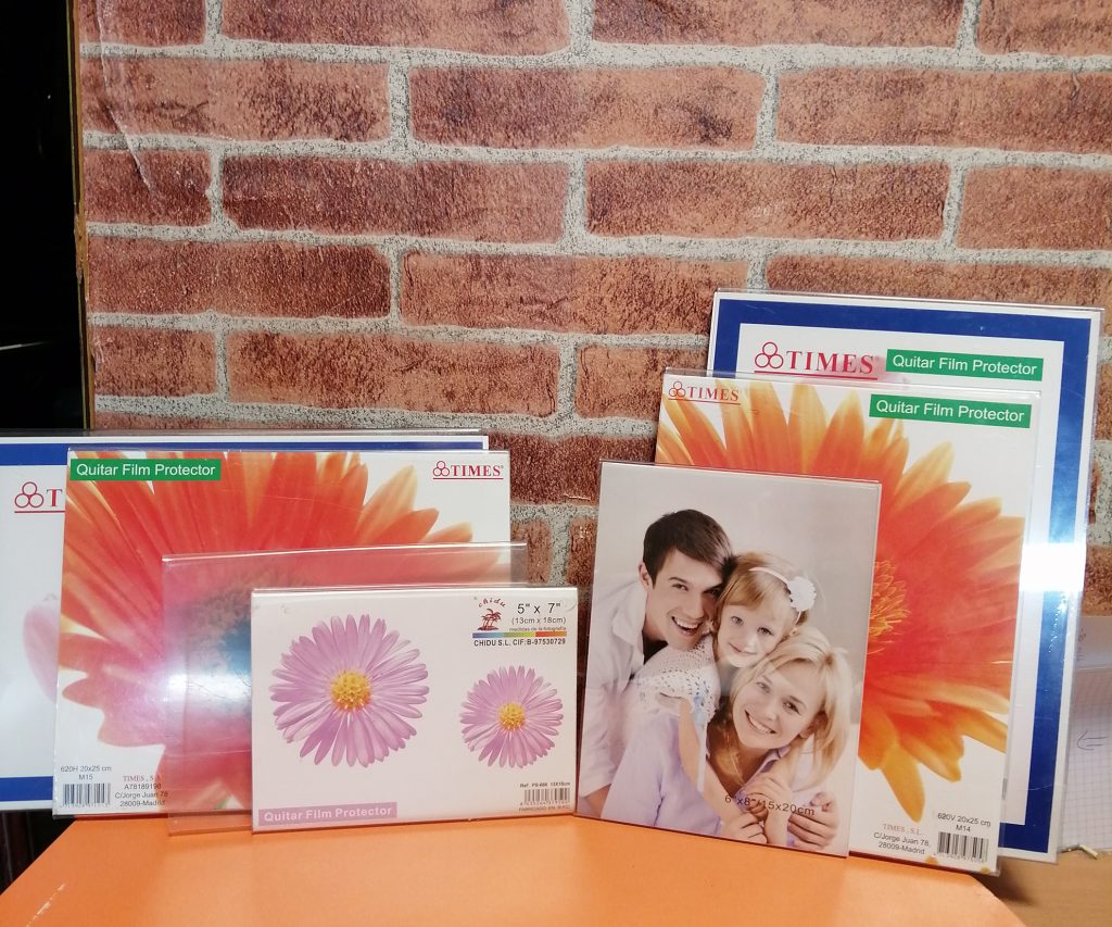 Disponemos de distintos tamaños de portafotos tanto en apaisado como en vertical, en metacrilato con base.